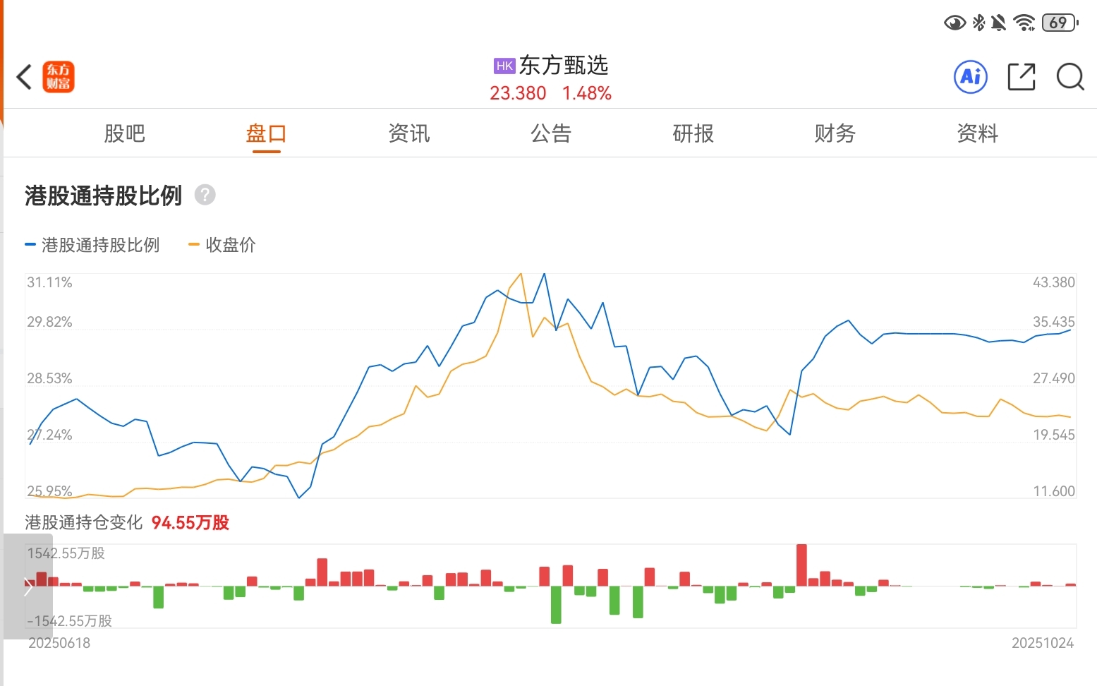 $东方甄选(HK|01797)$ 甄选港股通的比例接近 30了,这么小的流通盘根本不够买的,而且ETF的被动资金在不断的加仓,最终还是要爆拉一波,