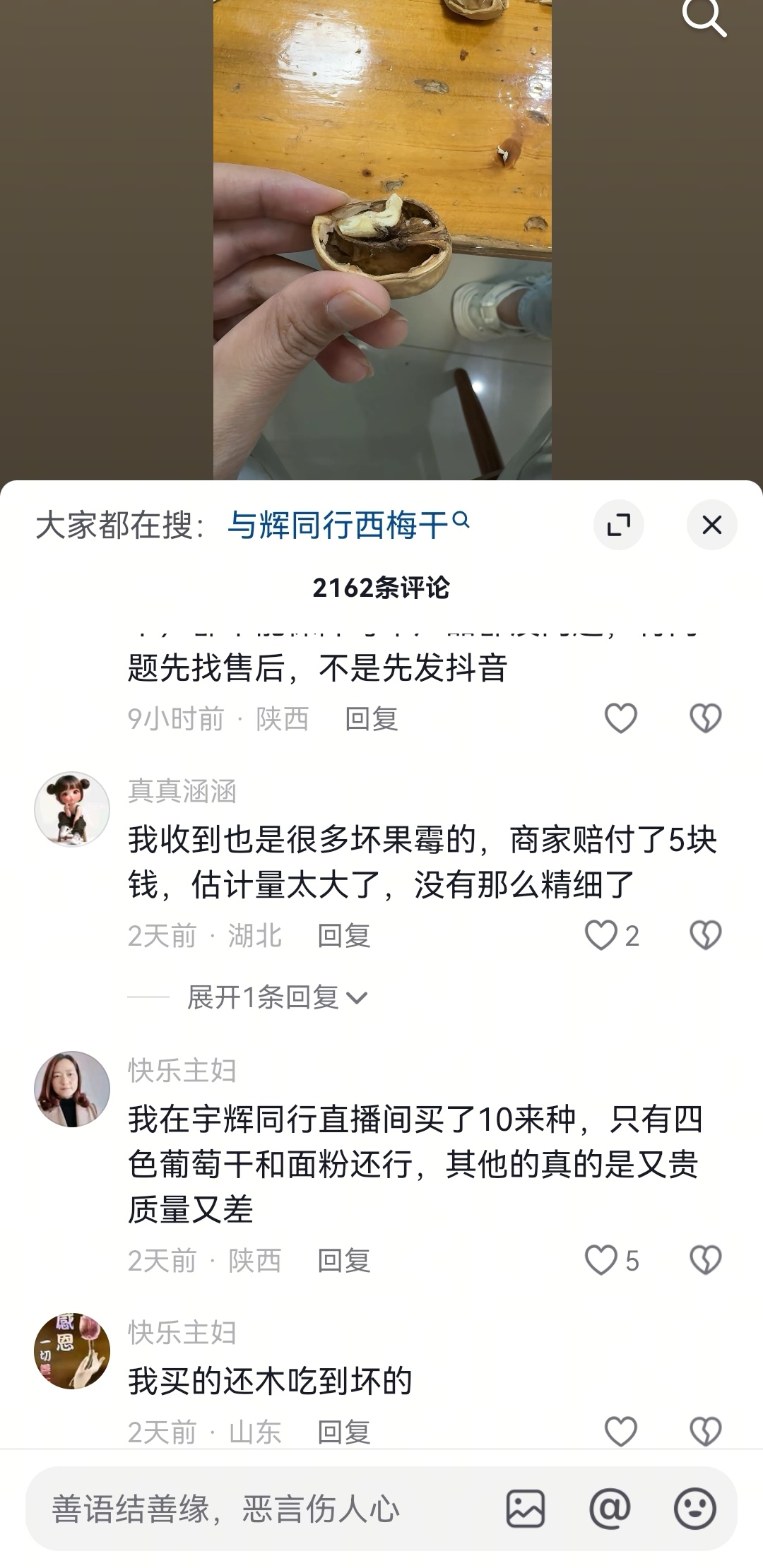 有人说在同行买的纸皮核桃有问题被懂个球们一顿狂喷