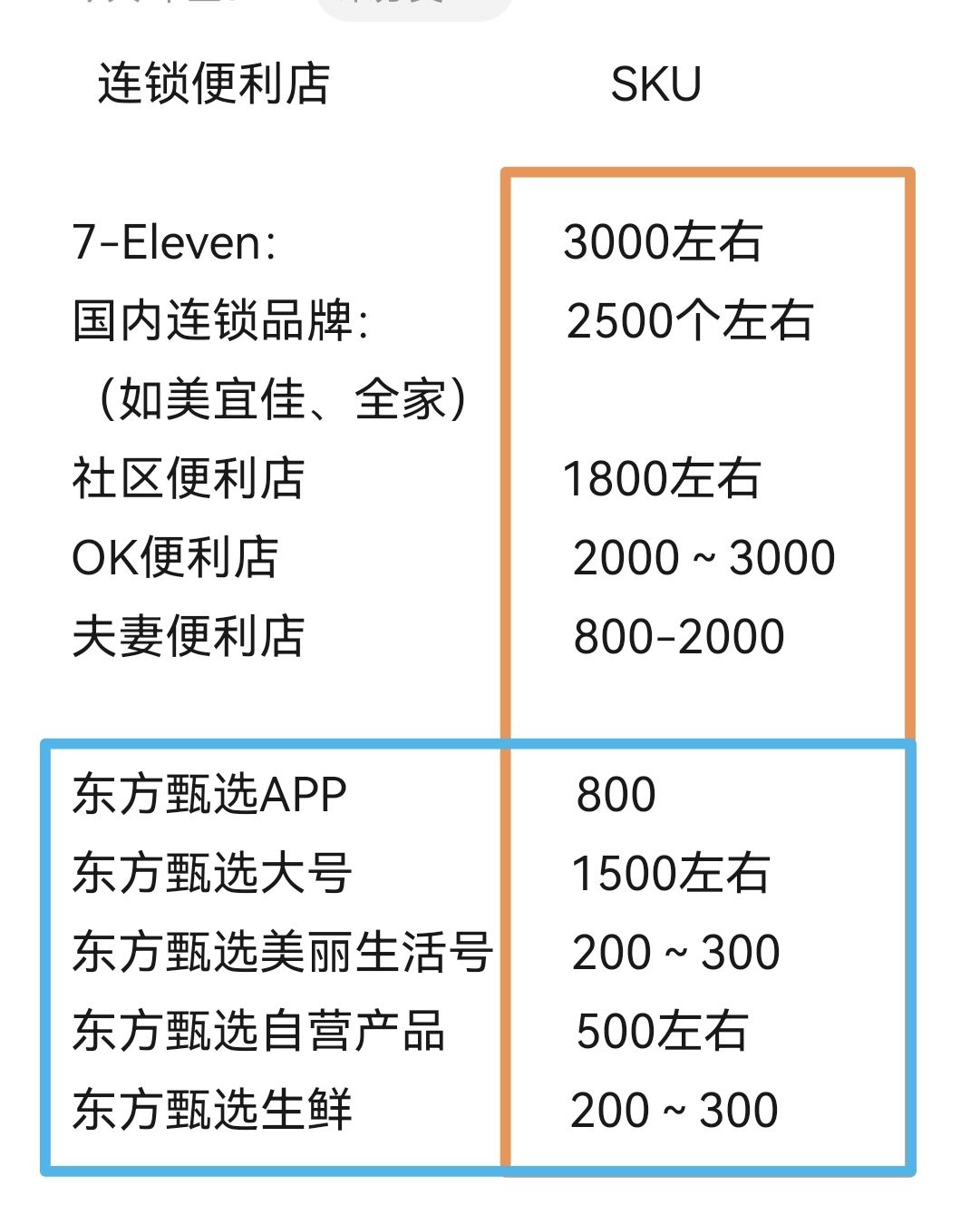 东方甄选除大号SKU保持在一千以上,其他账号还不如一个普通便利小店的数量,成本包
