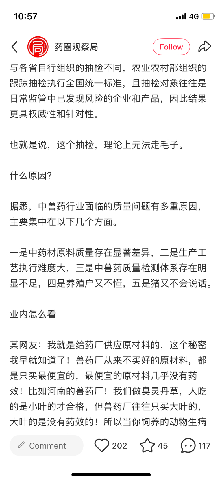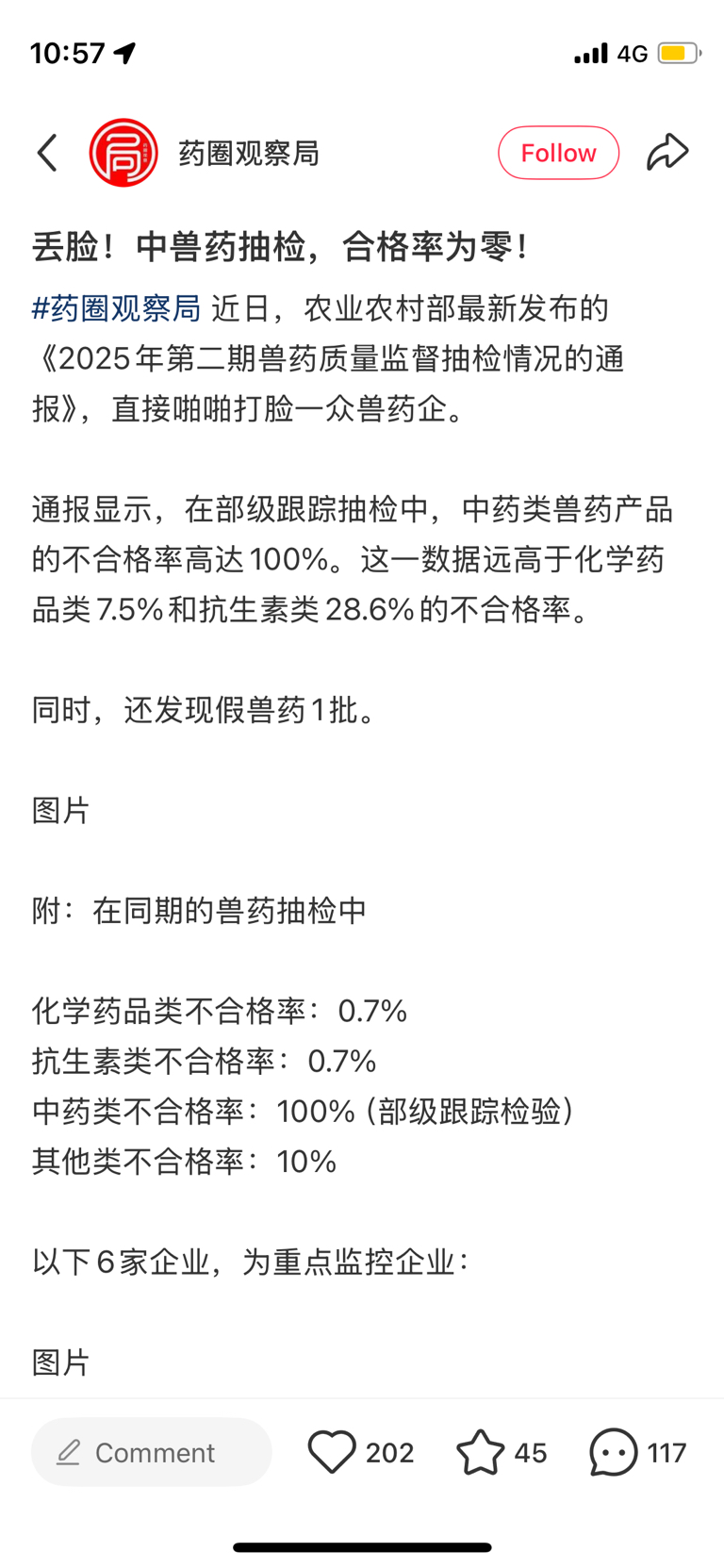 为啥要选靠谱的牛羊猪肉品牌,请看农业部对兽药使用的抽检,中药类100%不合格,出