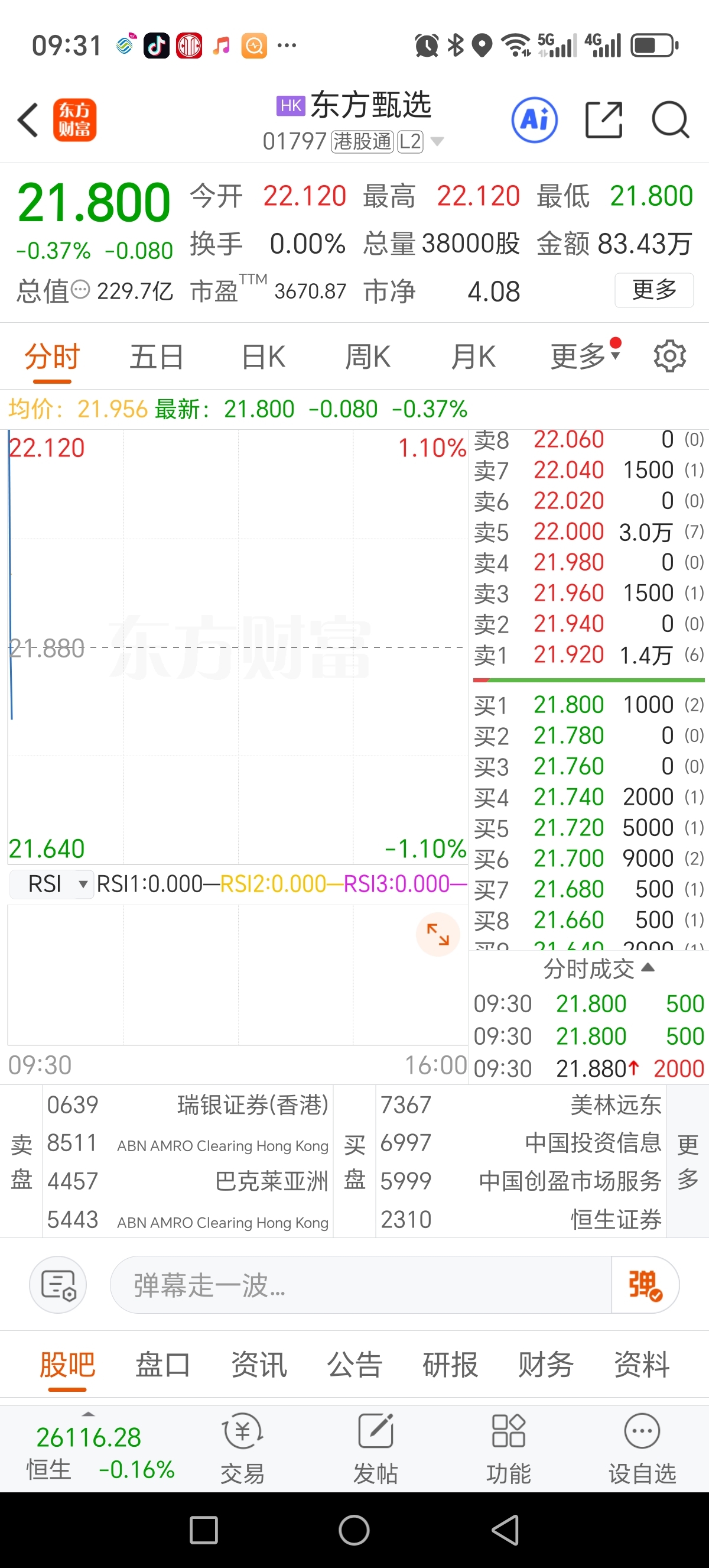 $东方甄选(HK|01797)$ 这票已经彻底废了,开盘一分钟成就了80几万。