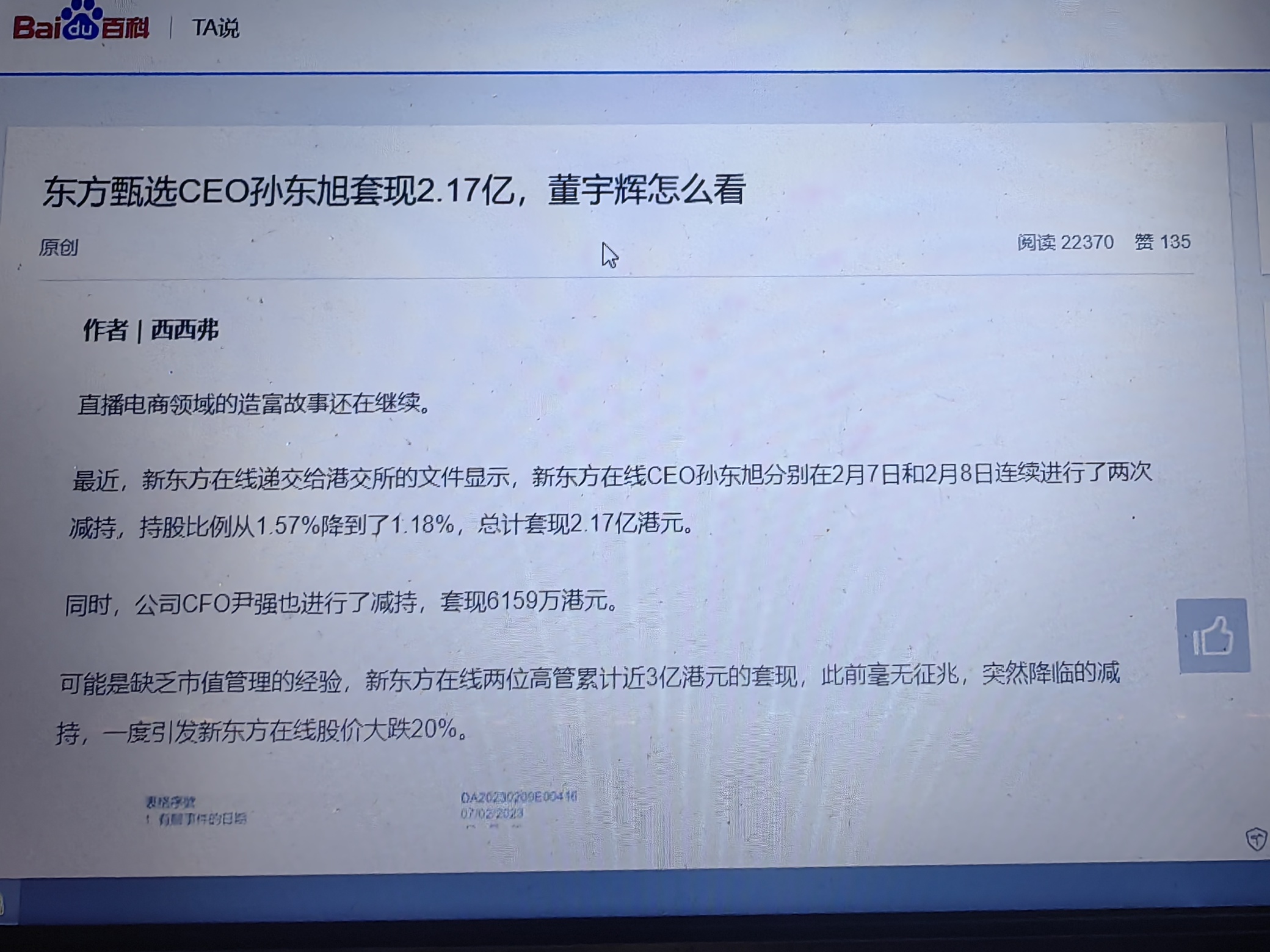 $东方甄选(HK|01797)$ 孙东旭作为东方甄选创始股东。他是有股份权益的。于敏红在民治等你会作为公司抬柱子的情况下还要赶他走。孙东旭就知道这个公司肯定会完蛋长不了。所以说他果断的在23年2月份就把股票套现了拿着2亿。剩下的就混俞敏洪的工资混到结束那一天。孙东旭作为CEO,他不他不看数据吗?他不知道失去董宇会会完蛋吗?他太知道了迟早完蛋。
