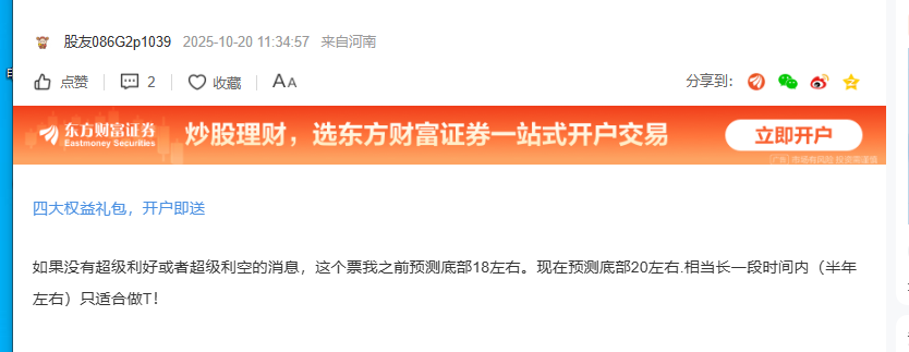 温馨提示: 1.根据《证券法》规定,禁止编造、传播虚假信息或者误导性信息,扰乱证券市场;2.用户在本社区发表的所有资料、言论等仅代表个人观点,与本网站立场无关,不对您构成任何投资建议。用户应基于自己的独立判断,自行决定证券投资并承担相应风险。《东方财富社区管理规定》