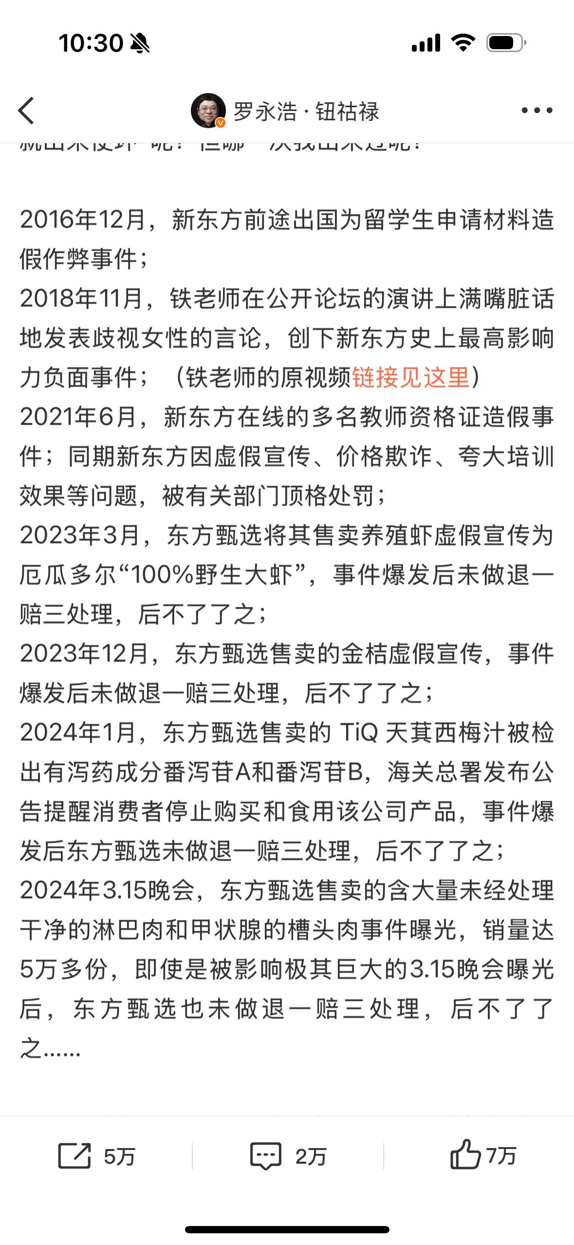 没想到竟然有这么多散户被深套在里面,你们太不了解俞敏洪了!你重仓一家公司不看这家公司的老板是什么样的人吗?多看一看罗永浩怎么评价老铁的
