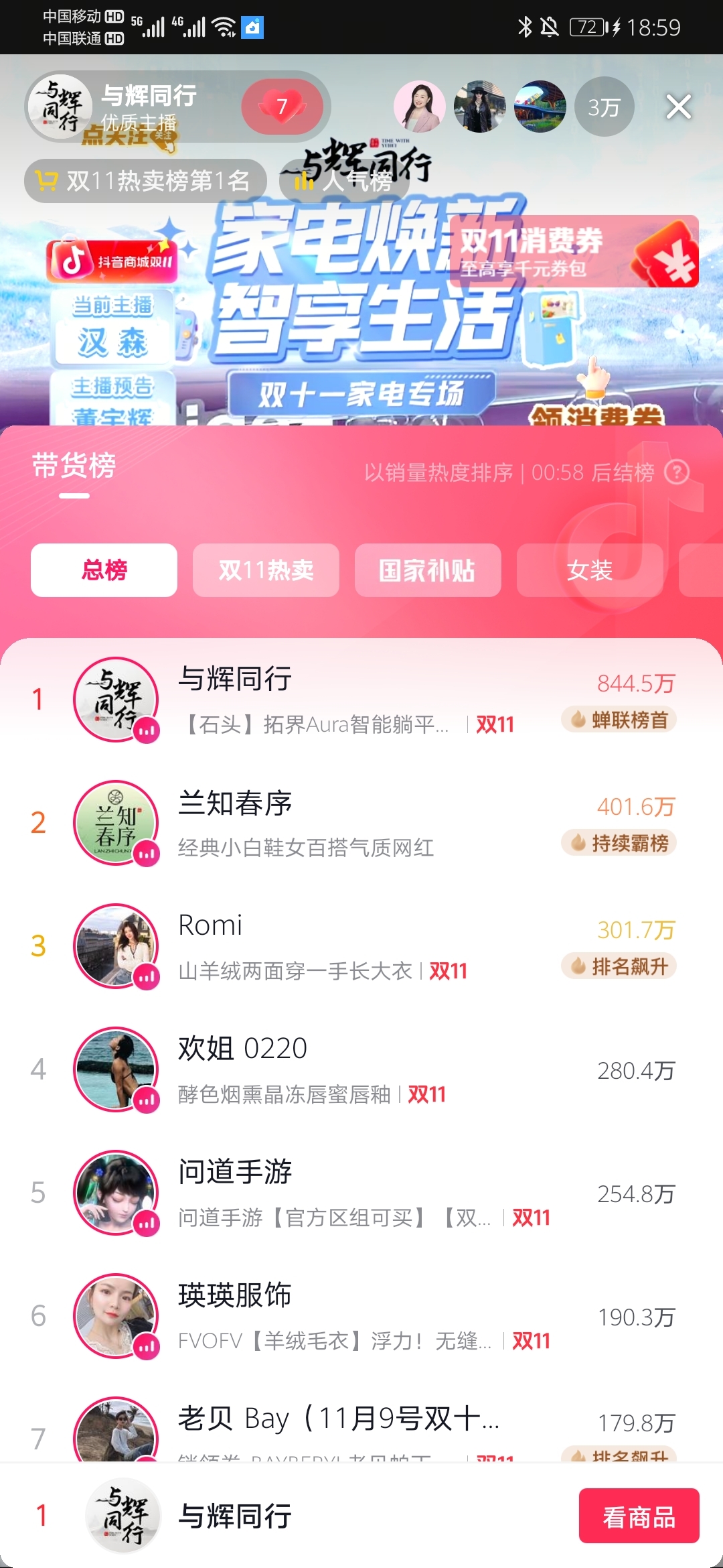 $东方甄选(HK|01797)$ 与辉同行和兰知春序很常态的第一第二了。