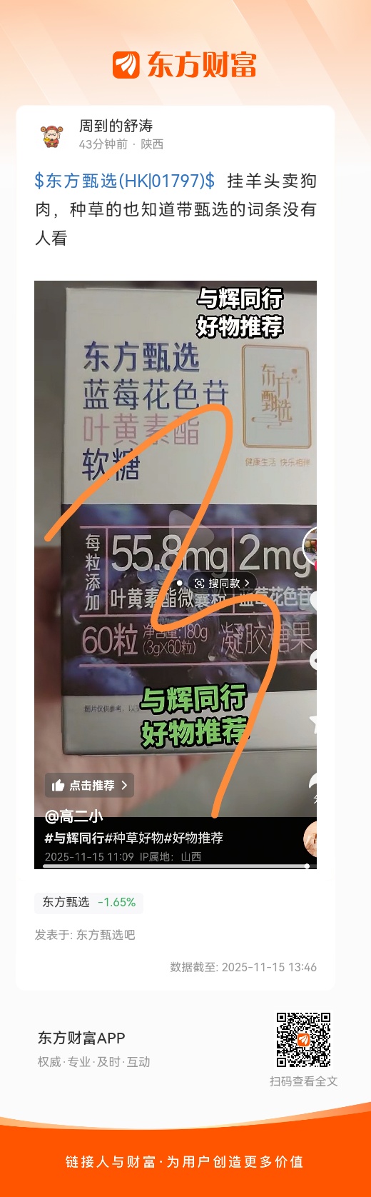 $东方甄选(HK|01797)$  挂羊头卖狗肉,种草的也知道带甄选的词条没有人看