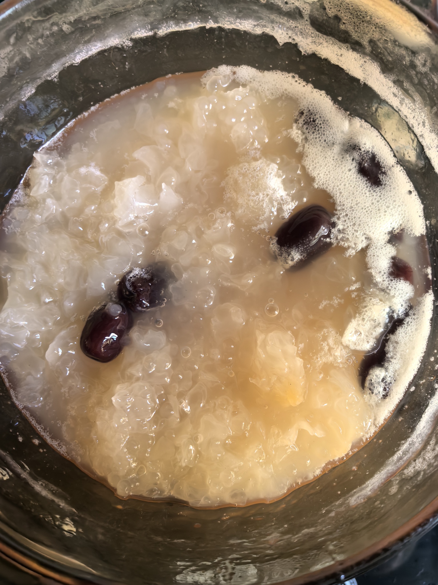 强烈推荐与辉同行新疆行的“疆朵朵”银耳和“漠上果园”的五斤红枣,买回来银耳老公昨晚煮的(我不知道睡着了),刚刚起来一看,我滴妈,大家看看,黏糊的劲,枣子是一拿到就吃了。。可以说是吃到的最好品质的小枣子。。肉多甜(唯一缺点大包装,开封后容易水分挥发,我天天直接不洗吃十来颗,主要好吃,停不下来)