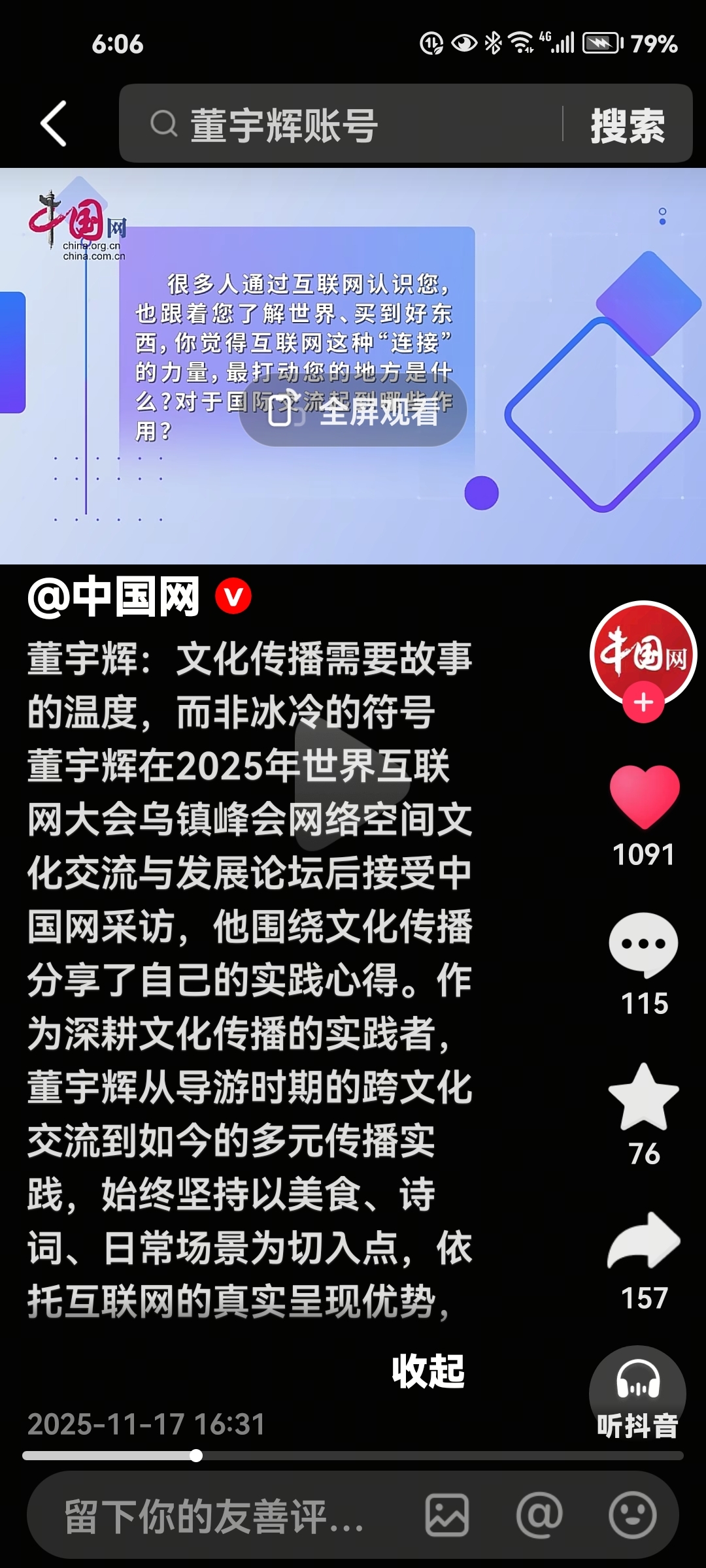 刚刚权威媒体“中国网”又发了宇辉两个视频。