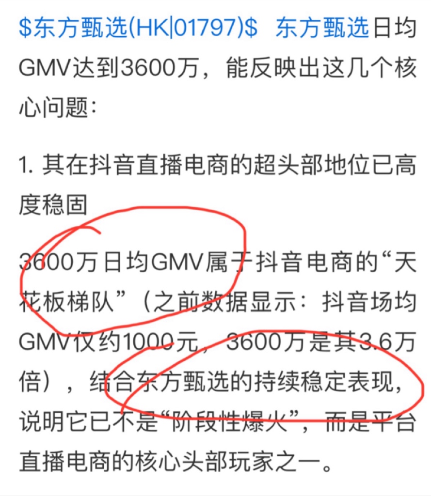 $东方甄选(HK|01797)$ 申万宏源证券研究所数据统计:本周(11/6-11/12)东方甄选及其子直播间在抖音平台的GMV 约2.56 亿元,日均GMV3653 万元,GMV 环比上周上升51%,GMV 同比上升29.5%。