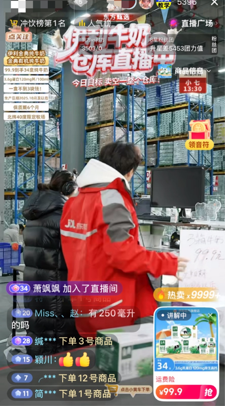 $东方甄选(HK|01797)$ 瞎选咋不卖自营牛奶了,跑到伊利牛奶仓库直播,还是大牌牛奶卖得好