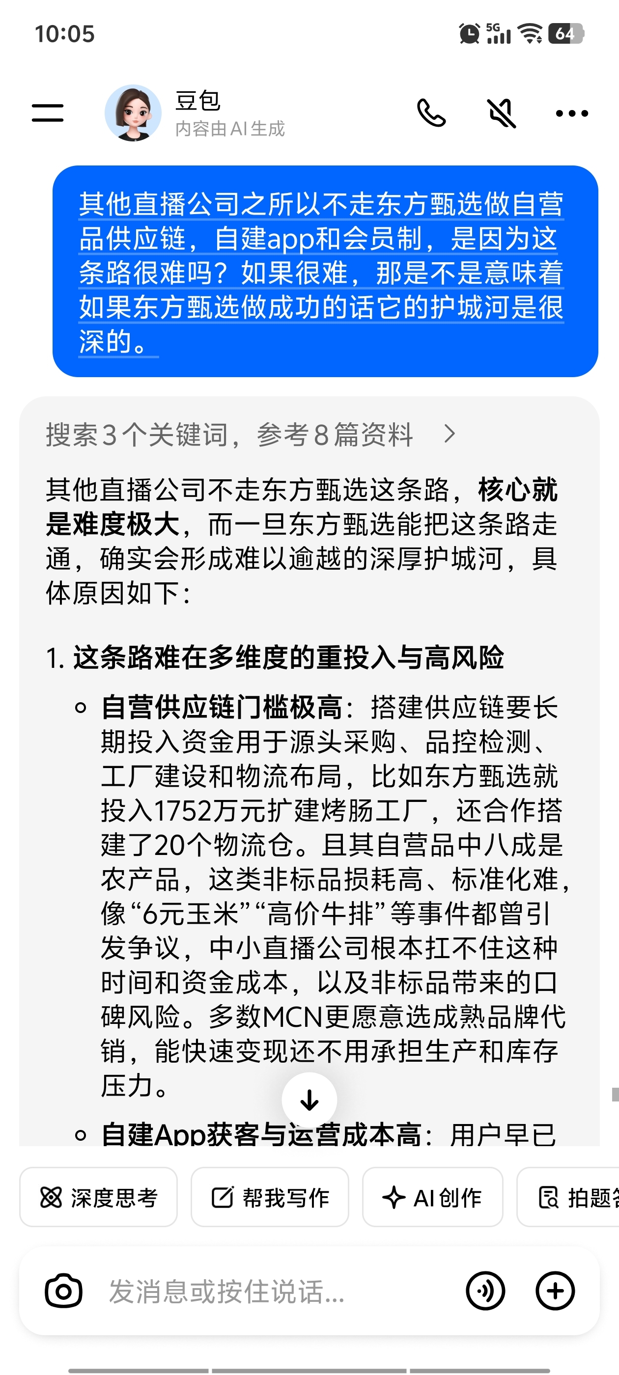 其他直播公司之所以不走东方甄选做自营品供应链,自建app和会员制,是因为这条路很