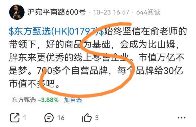 $东方甄选(HK|01797)$  这股票走势和152白眼狼教徒一样,字母表示lj