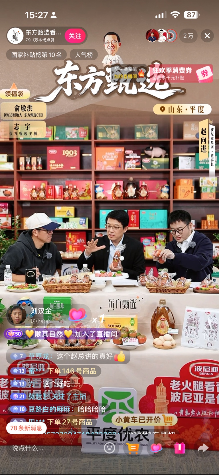 $东方甄选(HK|01797)$ 今天的直播,几次提到要参股企业