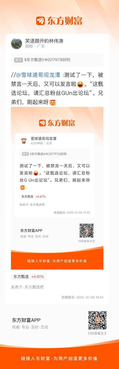 温馨提示: 1.根据《证券法》规定,禁止编造、传播虚假信息或者误导性信息,扰乱证券市场;2.用户在本社区发表的所有资料、言论等仅代表个人观点,与本网站立场无关,不对您构成任何投资建议。用户应基于自己的独立判断,自行决定证券投资并承担相应风险。《东方财富社区管理规定》