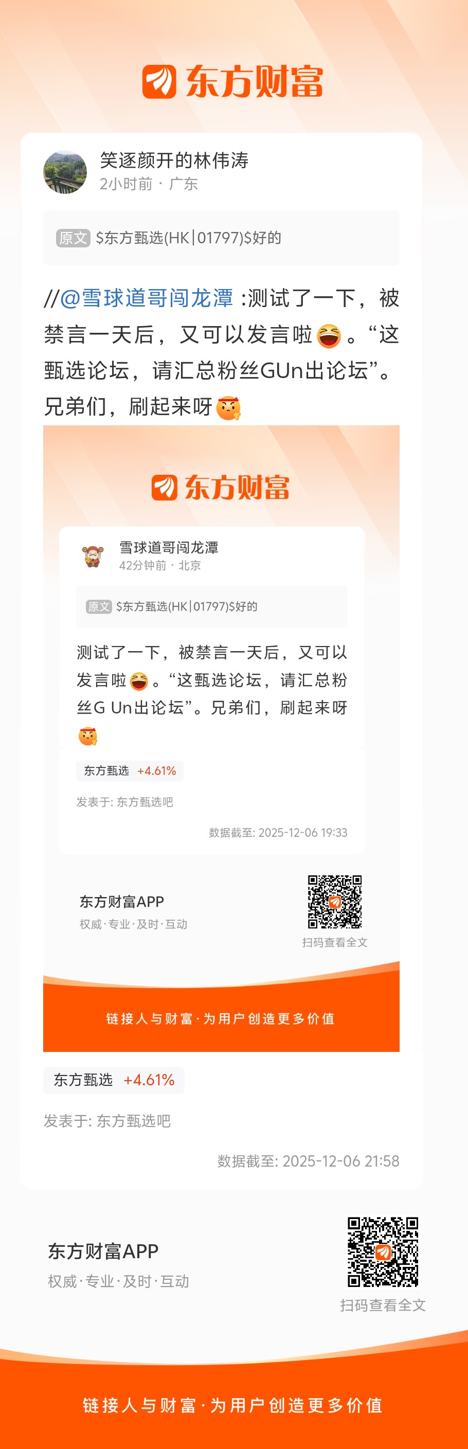 温馨提示: 1.根据《证券法》规定,禁止编造、传播虚假信息或者误导性信息,扰乱证券市场;2.用户在本社区发表的所有资料、言论等仅代表个人观点,与本网站立场无关,不对您构成任何投资建议。用户应基于自己的独立判断,自行决定证券投资并承担相应风险。《东方财富社区管理规定》