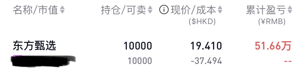 $东方甄选(HK|01797)$ 太累了,跌得我头昏脑胀。一看,账户,甄选还有51万盈利,砸整,多久才能跌没?