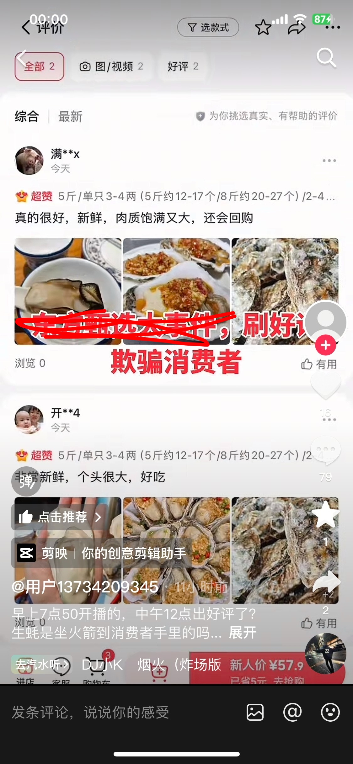 刷到这样一个视频,我也好奇点进去一看,两个好评图片果然一模一样,哈哈哈