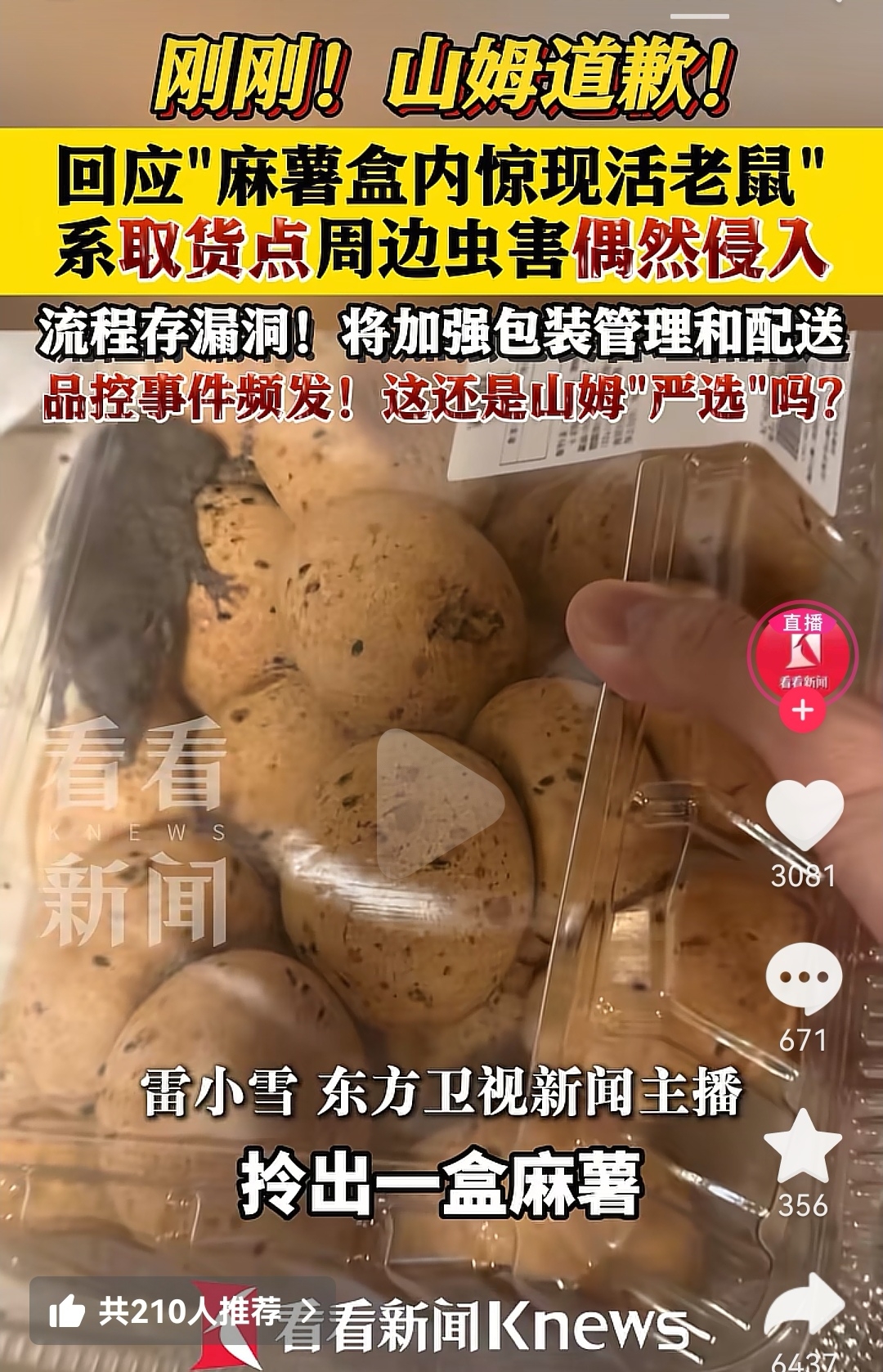 $东方甄选(HK|01797)$ 还对标山姆吗?都出来老鼠了。