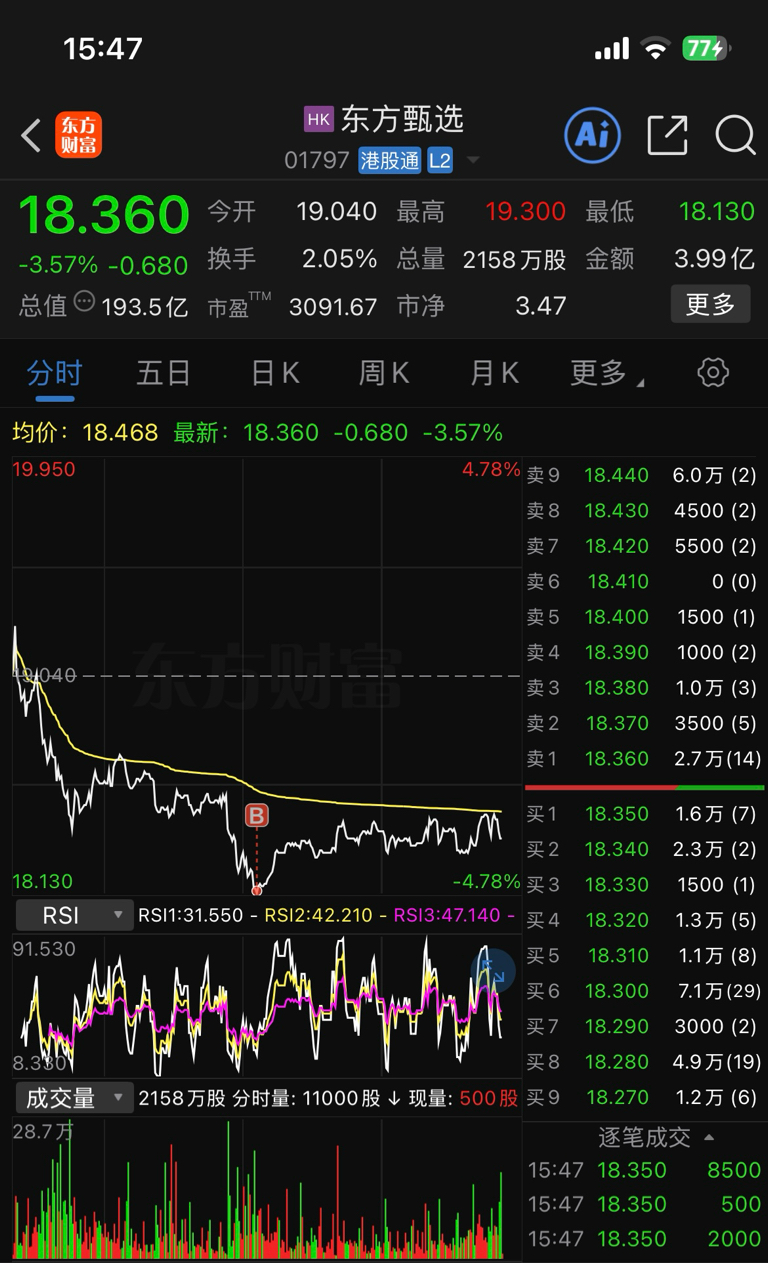 $东方甄选(HK|01797)$ 今天开始建仓了。
