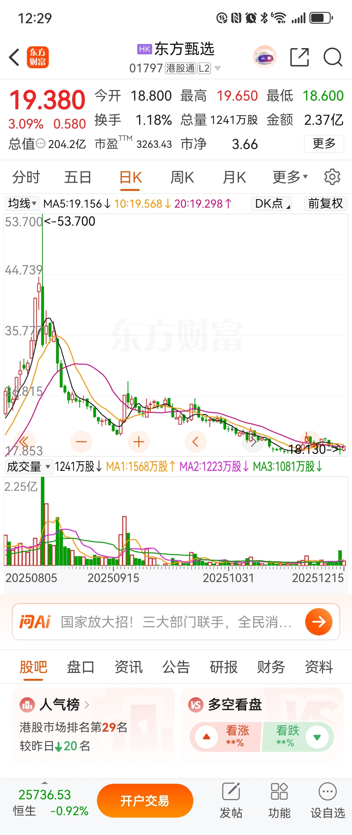 $东方甄选(HK|01797)$ 标准的A杀,不得翻身