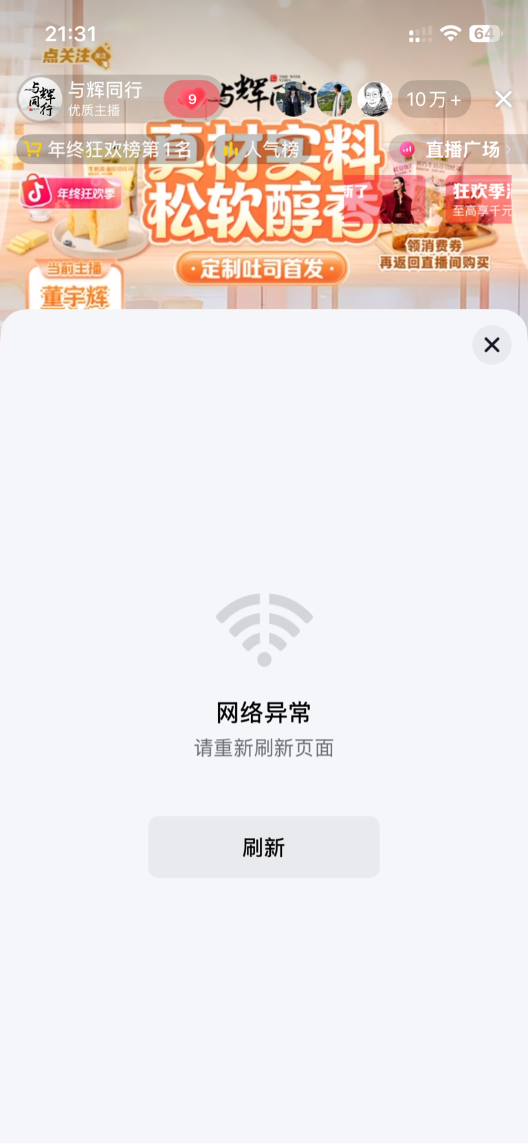 我懵了,35万+在线抢购与辉同行定制吐司,居然出现网络异常,太热卖了,一分钟就没