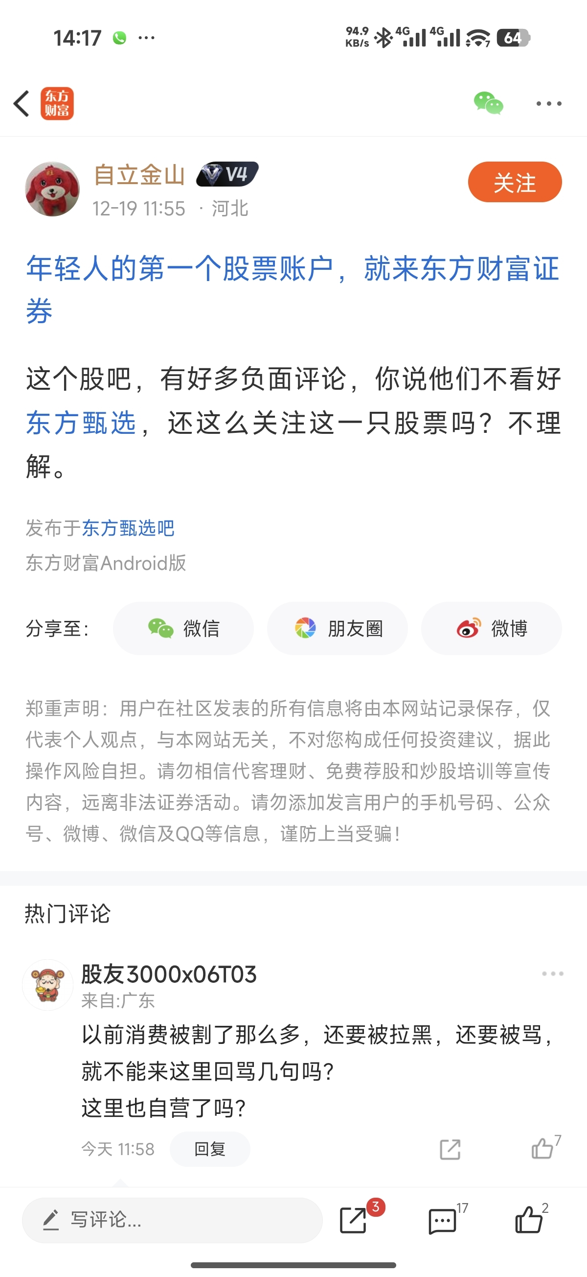 温馨提示: 1.根据《证券法》规定,禁止编造、传播虚假信息或者误导性信息,扰乱证券市场;2.用户在本社区发表的所有资料、言论等仅代表个人观点,与本网站立场无关,不对您构成任何投资建议。用户应基于自己的独立判断,自行决定证券投资并承担相应风险。《东方财富社区管理规定》