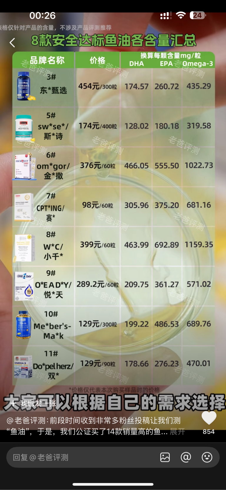 老爸测评的,鱼油,看出来了,东方某选的性价比最低,还不如129的