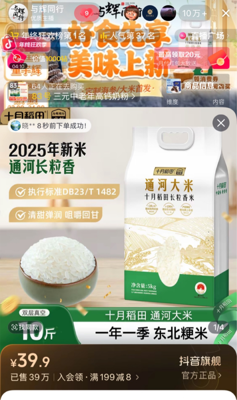$东方甄选(HK|01797)$ 小董这次定制大米库存拉满了,销量超过39万单