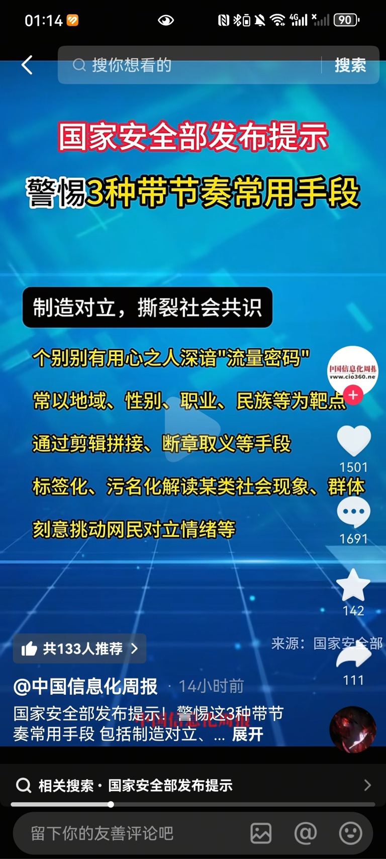 这个图发的特别及时,不管在这里还是在dy,如果觉得有类似情况,可以向平台或相关部门反馈,理由就可以写“制造对立,撕裂社会共识。个别别有用心之人深谙"流量密码" ,常以地域,性别,职业,民族等为靶点。通过剪辑拼接,断章取义等手段。标签化,污名化解读某类社会现象,群体。刻意挑动网民对 情绪等”。