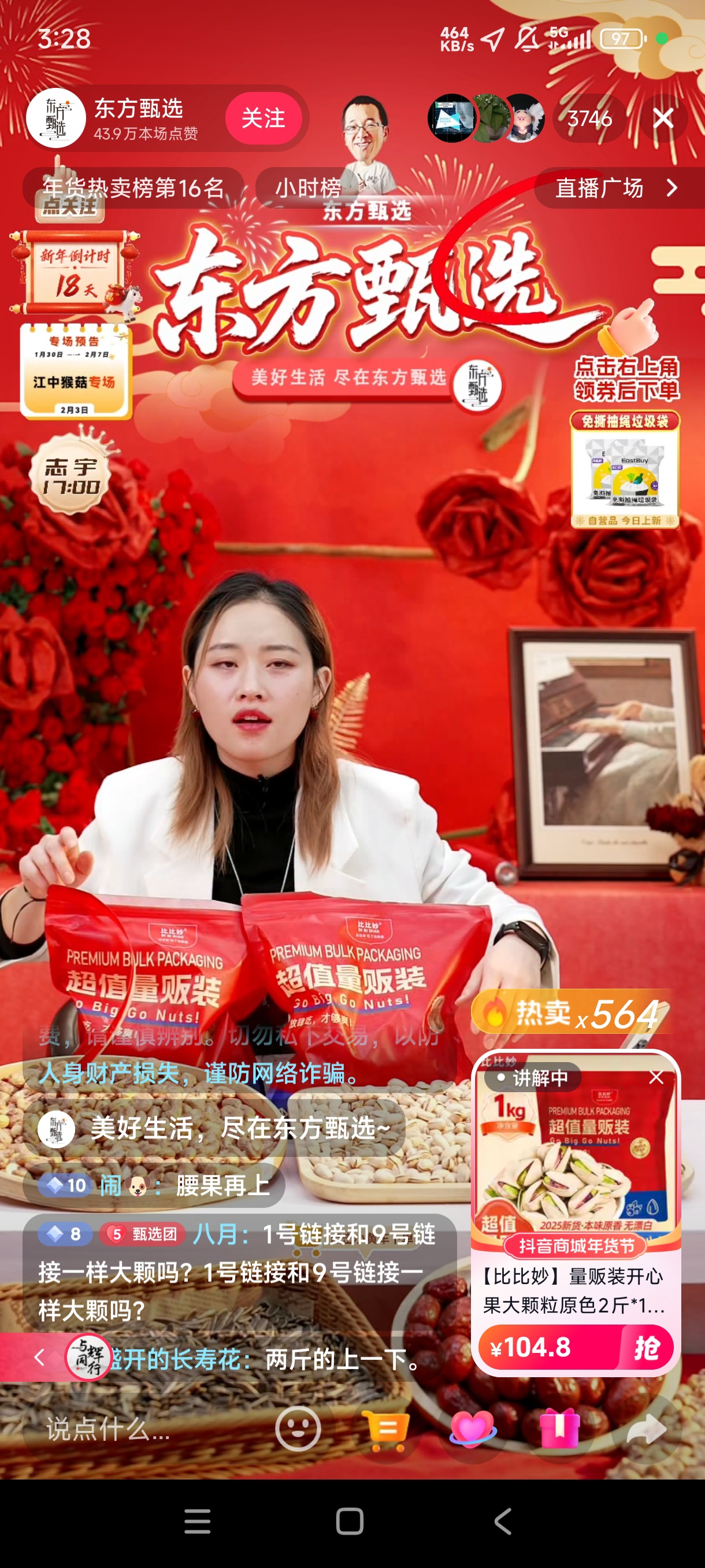 $东方甄选(HK|01797)$ 下午3点多直播,人还是挺多的