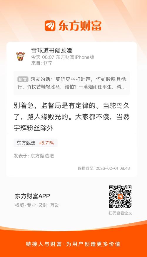 温馨提示: 1.根据《证券法》规定,禁止编造、传播虚假信息或者误导性信息,扰乱证券市场;2.用户在本社区发表的所有资料、言论等仅代表个人观点,与本网站立场无关,不对您构成任何投资建议。用户应基于自己的独立判断,自行决定证券投资并承担相应风险。《东方财富社区管理规定》