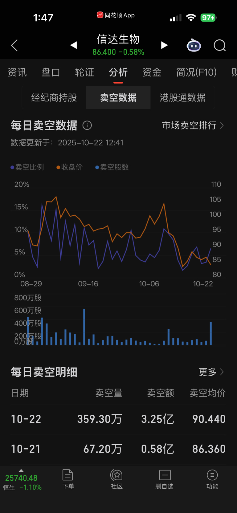 $信达生物(HK|01801)$ 涨四个点就敢作空,奈何国人也帮着,唉......