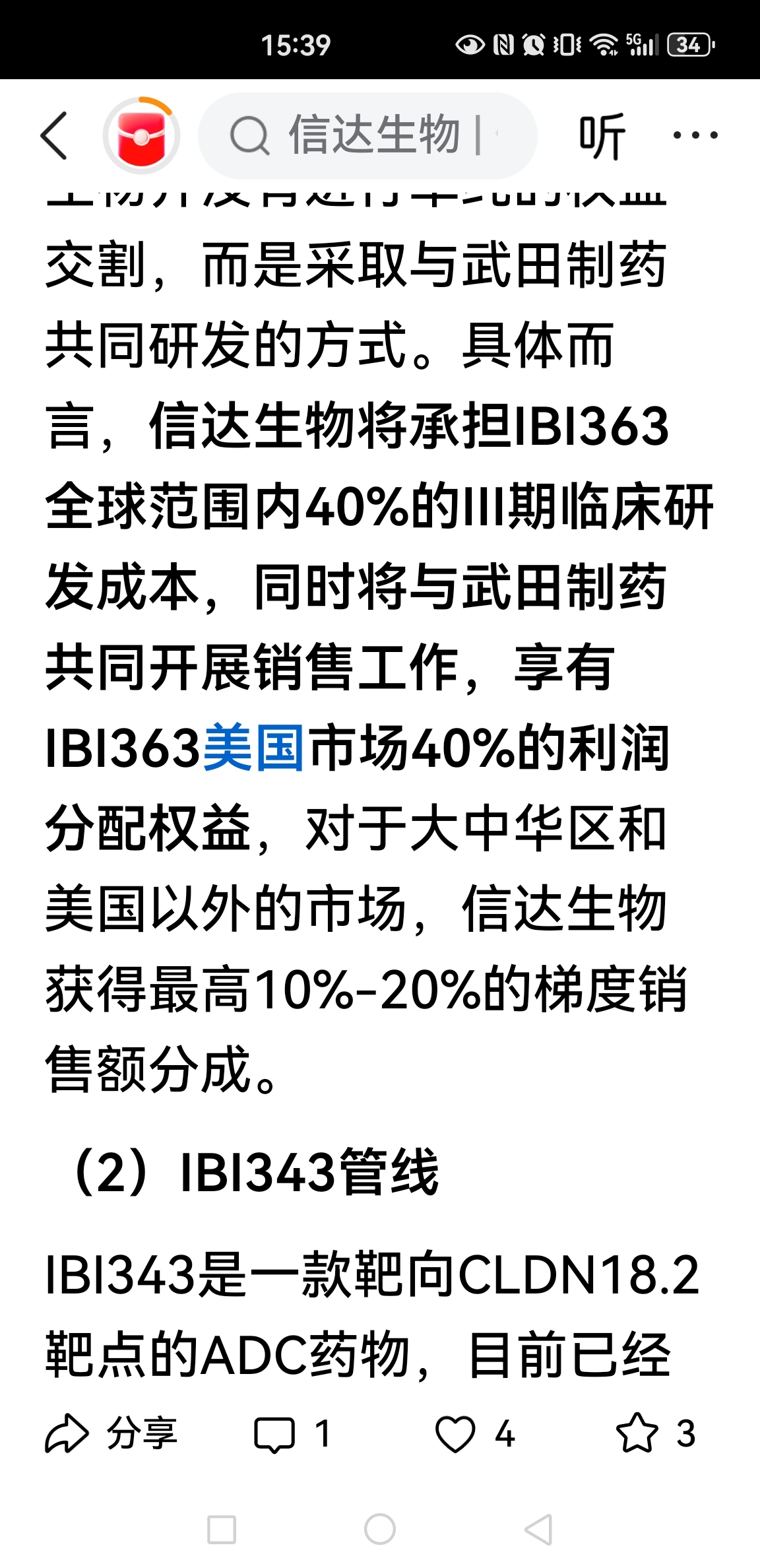 $信达生物(HK|01801)$ 大中华区和美国市场外,投入占比40%,利润分成却只有10-20%,这个有点奇葩