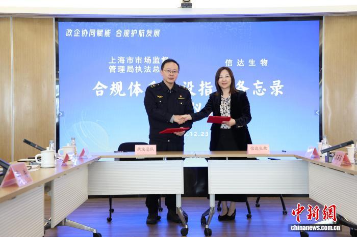 中新网上海12月23日电(记者许婧)上海市市场监督管理局执法总队(下称:执法总队)23日与信达生物举行合规体系建设合作签约仪式,签署合规体系建设指导备忘录,旨在进一步提升医药企业规范经营和风险防控水平,护航生物医药产业创新发展。