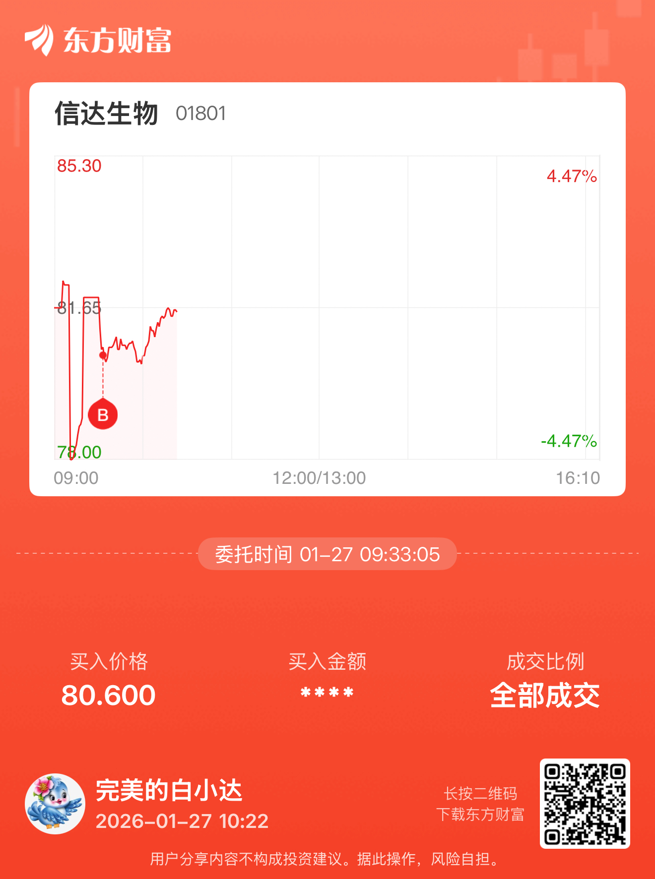 温馨提示: 1.根据《证券法》规定,禁止编造、传播虚假信息或者误导性信息,扰乱证券市场;2.用户在本社区发表的所有资料、言论等仅代表个人观点,与本网站立场无关,不对您构成任何投资建议。用户应基于自己的独立判断,自行决定证券投资并承担相应风险。《东方财富社区管理规定》