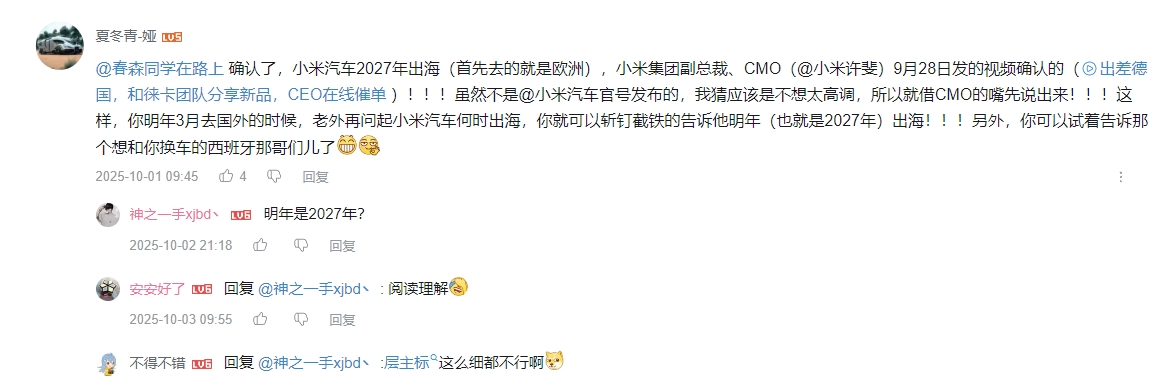 $小米集团-W(HK|01810)$ 小米汽车会2027年出海,首先去的是欧洲!