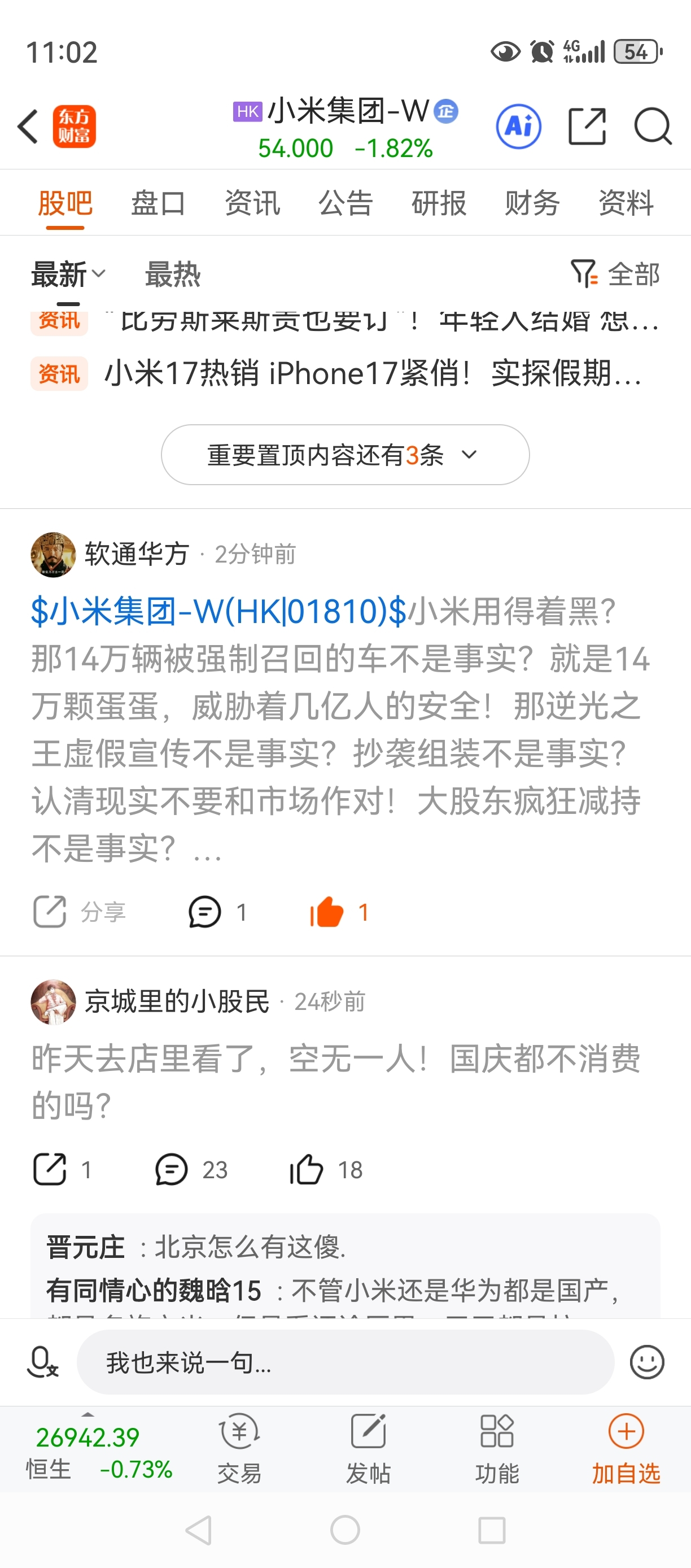 $小米集团-W(HK|01810)$ 恐慌到删除唱空的帖子了!笑死人