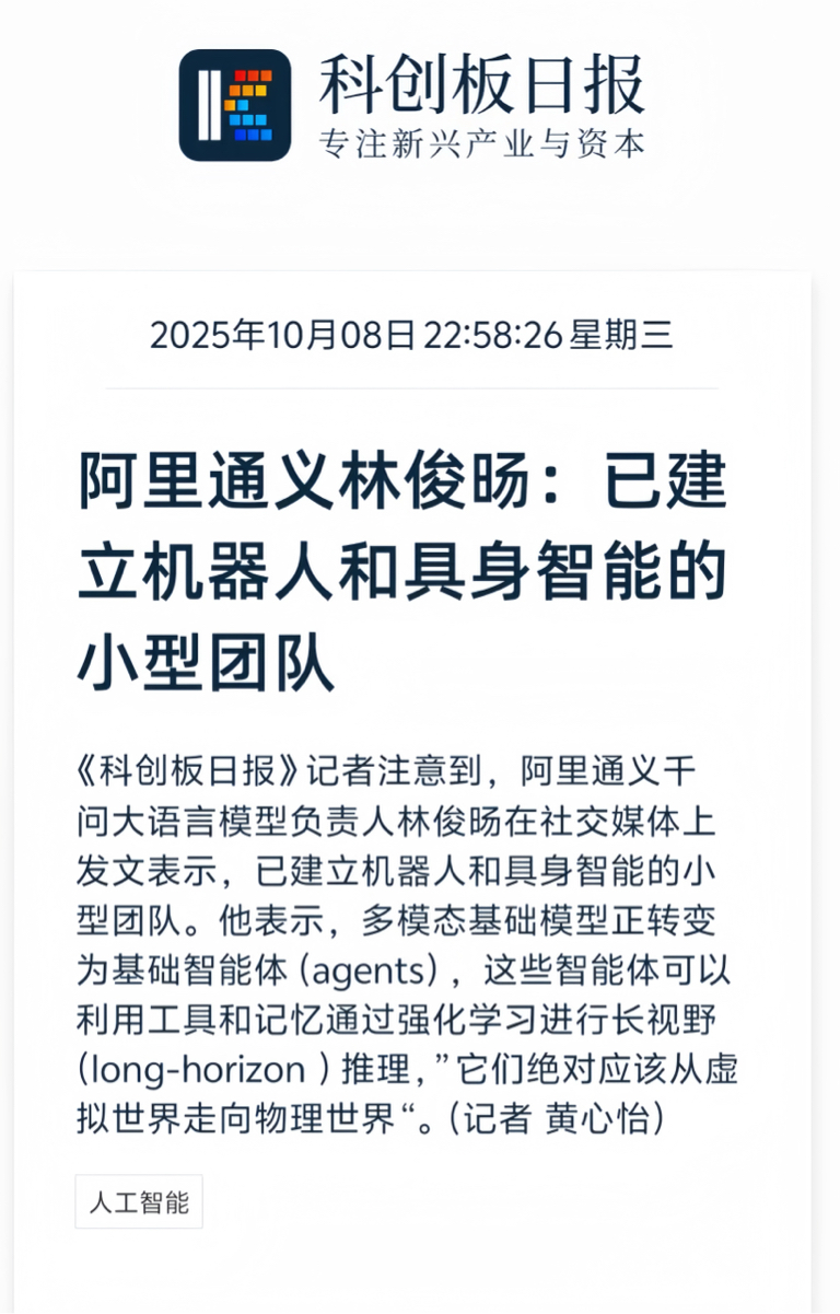 $小米集团-W(HK|01810)$ 阿里也布局机器人了,说应该从虚拟世界走向物理世界。