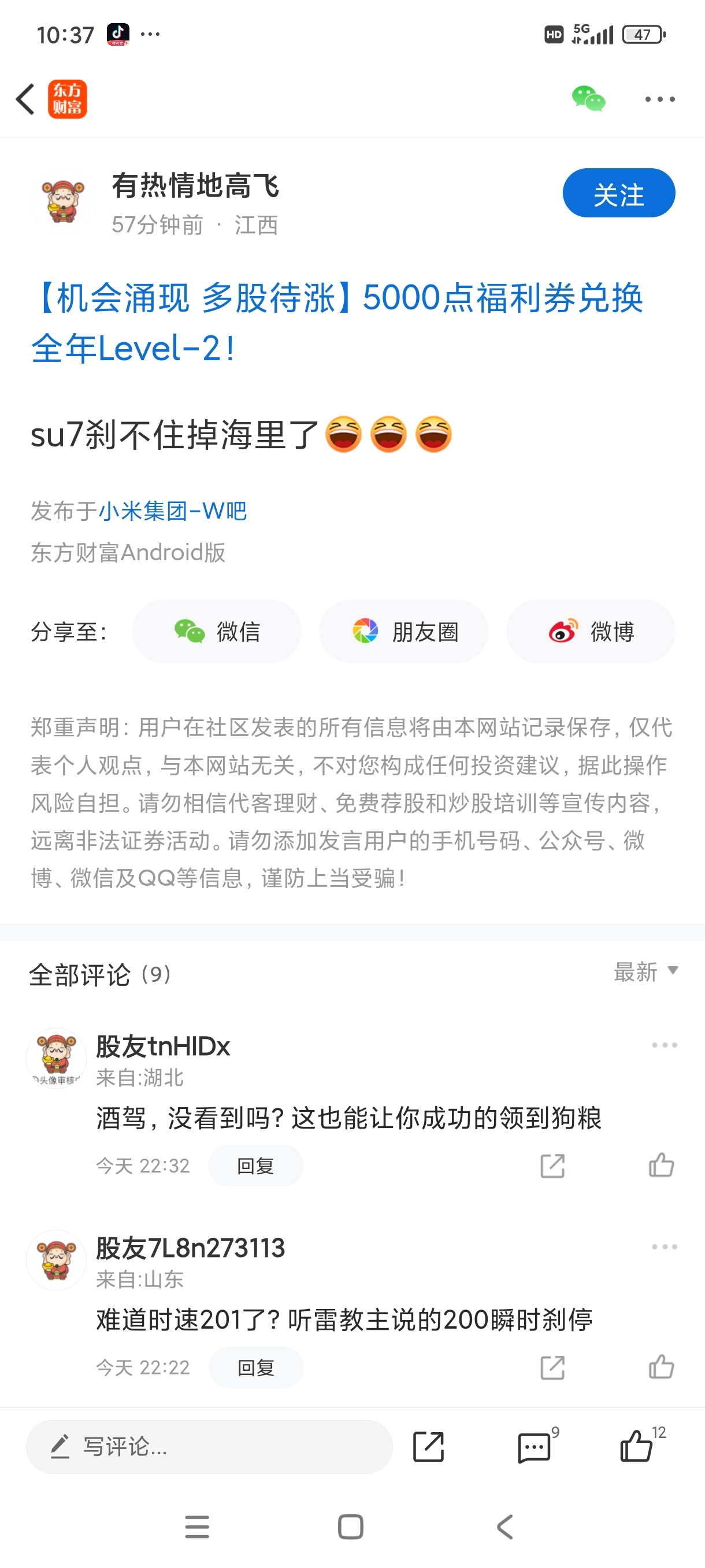 温馨提示: 1.根据《证券法》规定,禁止编造、传播虚假信息或者误导性信息,扰乱证券市场;2.用户在本社区发表的所有资料、言论等仅代表个人观点,与本网站立场无关,不对您构成任何投资建议。用户应基于自己的独立判断,自行决定证券投资并承担相应风险。《东方财富社区管理规定》