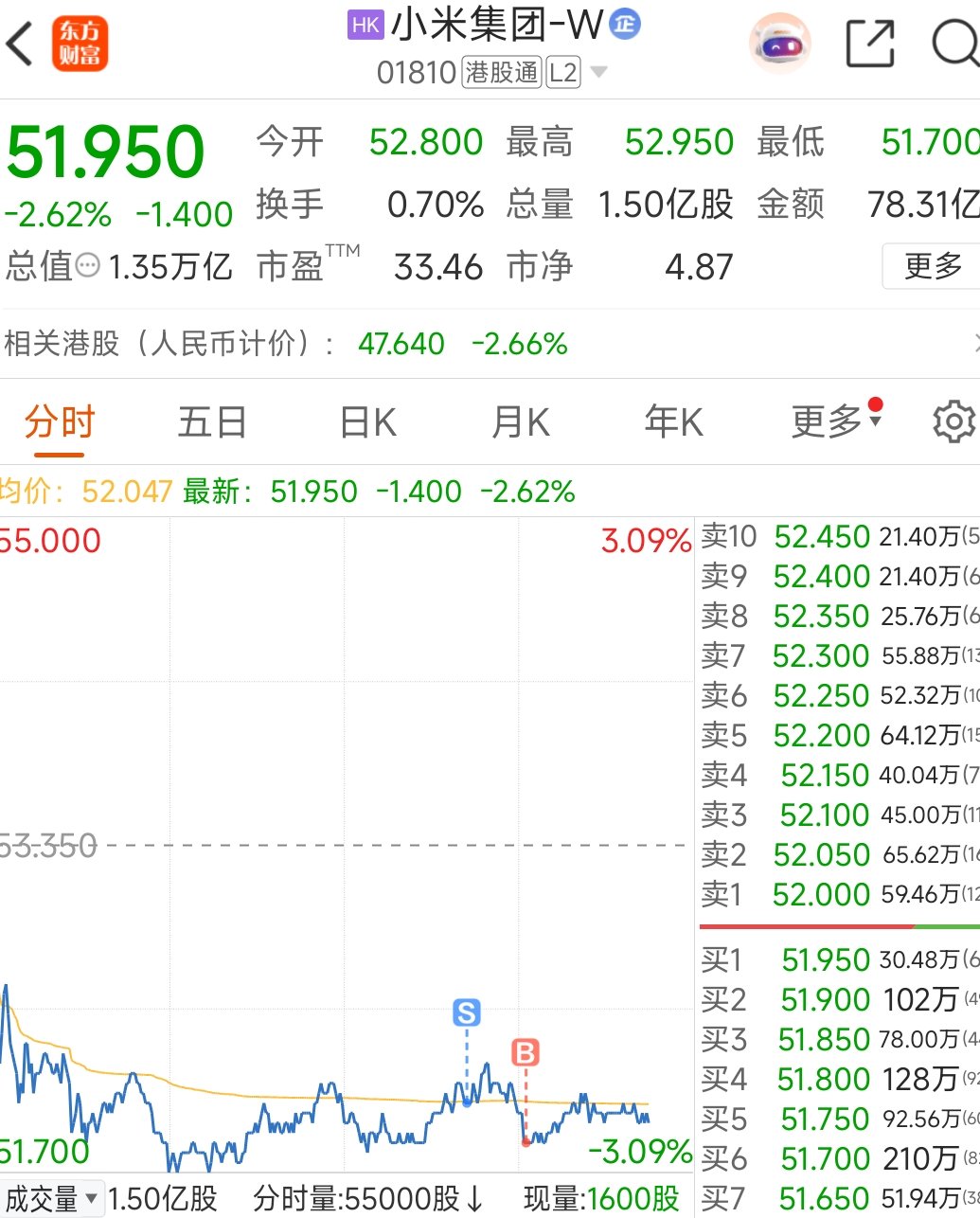 乌龙指-误卖小米集团