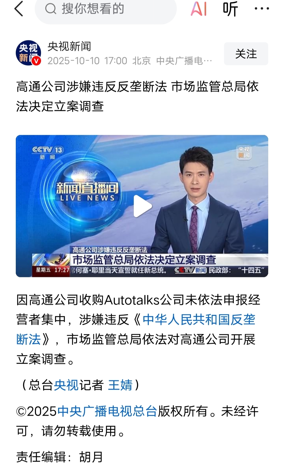 $小米集团-W(HK|01810)$ 高通被反垄断立案调查了,明天继续得跳水