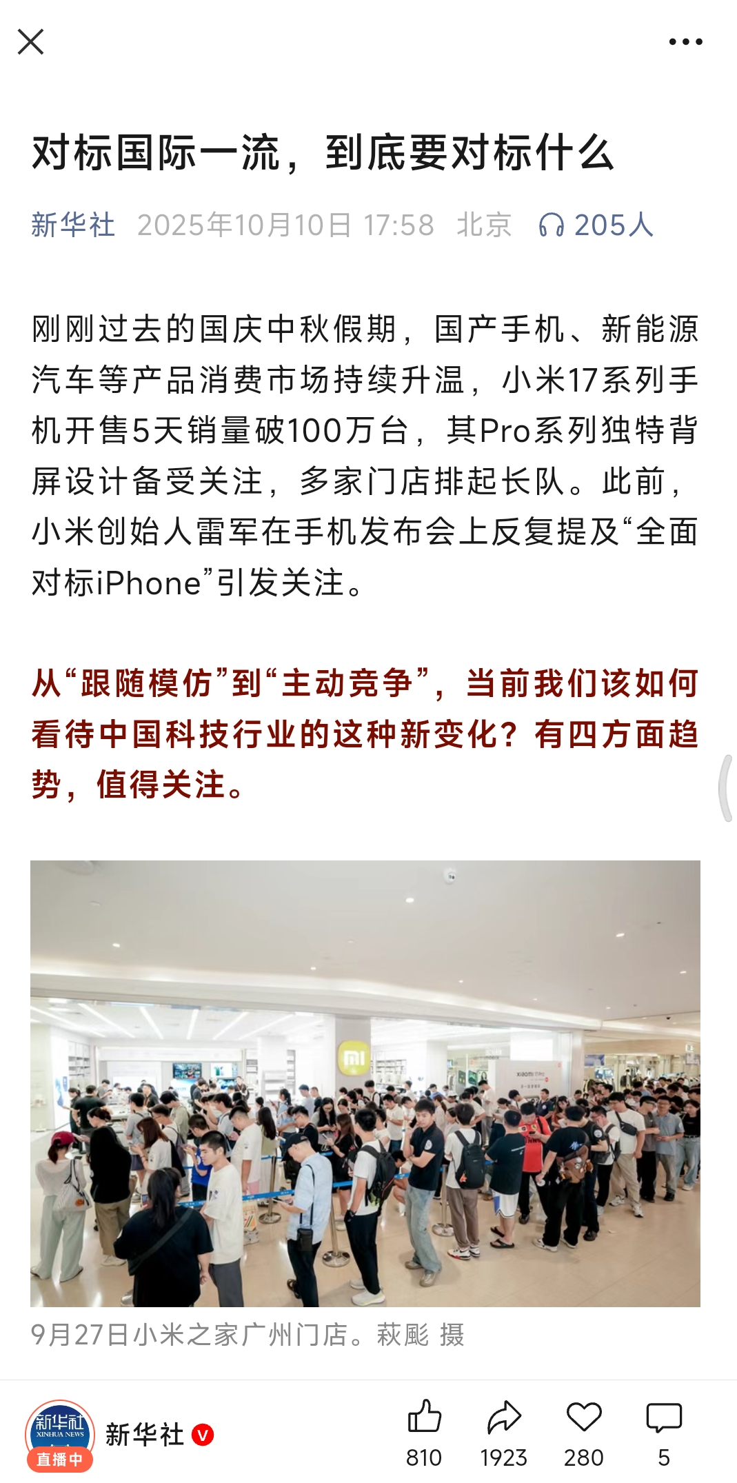 $小米集团-W(HK|01810)$ 新华社发文支持小米,黑子们要气死了