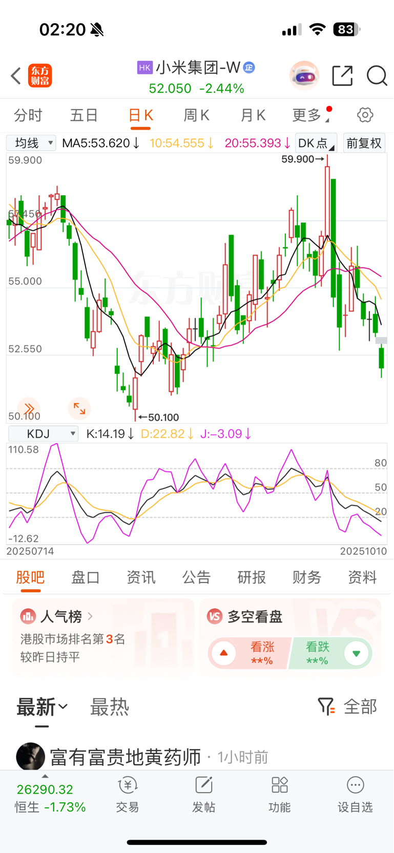 $小米集团-W(HK|01810)$ KDJ跌过头了,超卖了