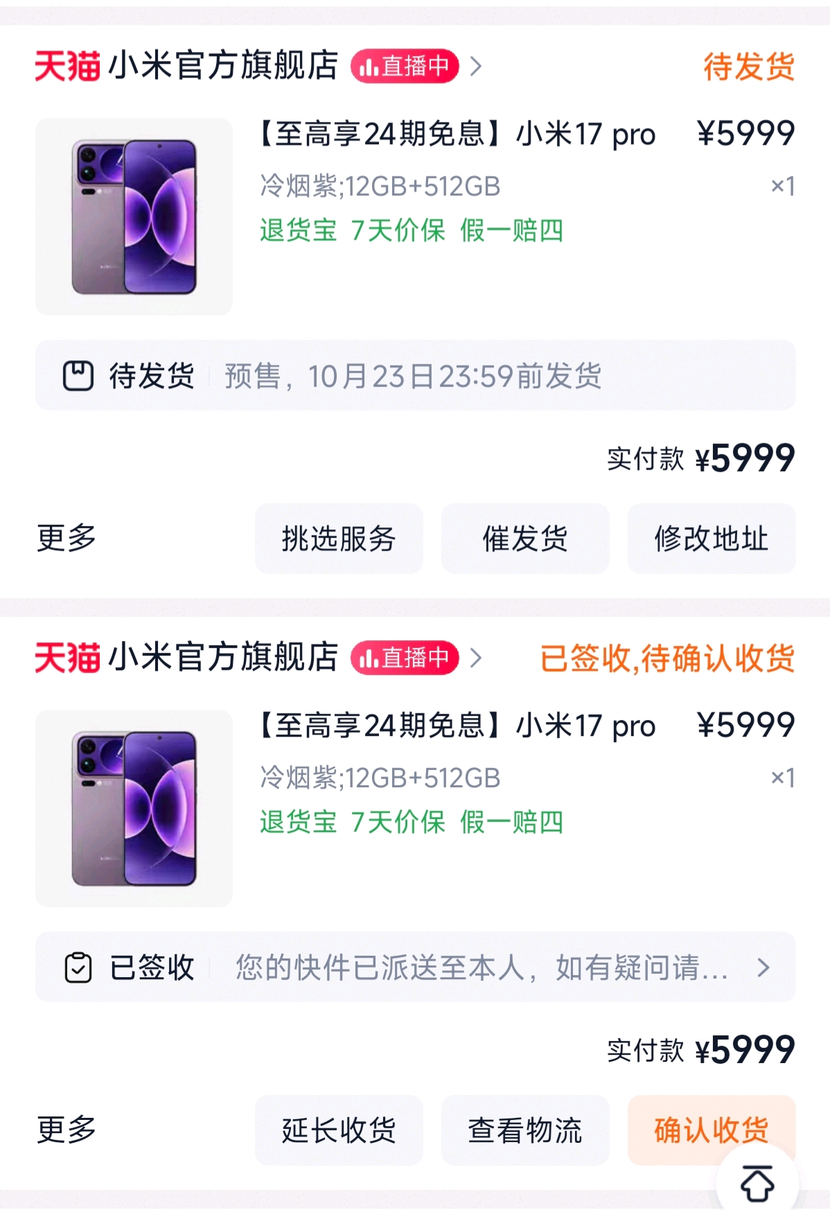 小米加油,买了小米17promax,手机很好用,给老婆又买了一台,用了之后才知道