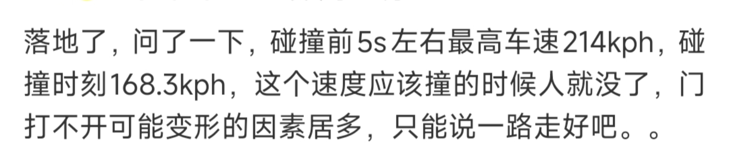 酒驾,撞前五秒214公里每小时,也就是车硬才有这事,换别的车当场成纸片就没事了
