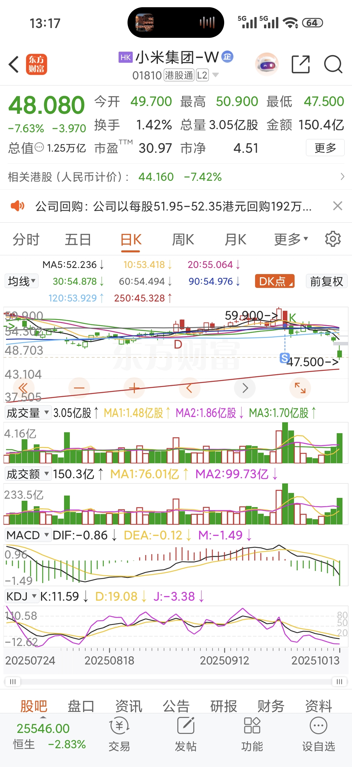 $小米集团-W(HK|01810)$ 55.550清的仓现在想想真的很明智