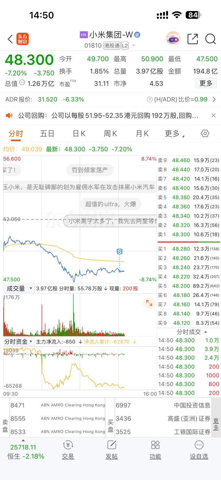 $小米集团-W(HK|01810)$ 黑子太多了,受不了,卖了你,等你企稳我再回来,先去了阿里