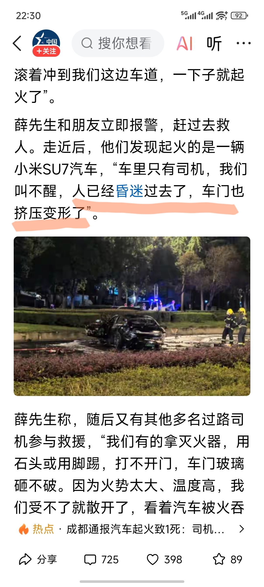 $小米集团-W(HK|01810)$ 新闻周刊-救援人员说的,车门变形了