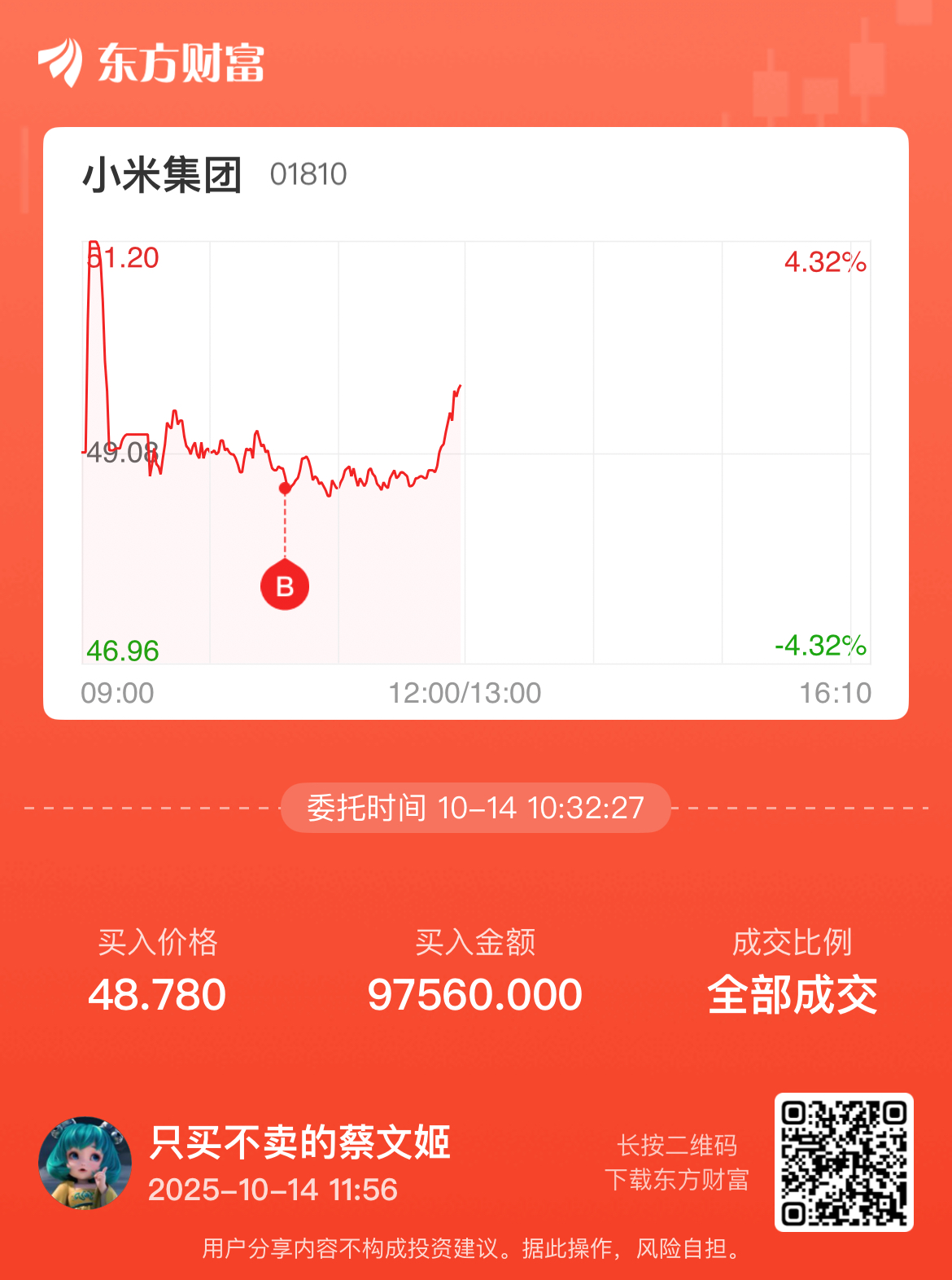 $小米集团-W(HK|01810)$ 感谢小米,连续第三天加仓了