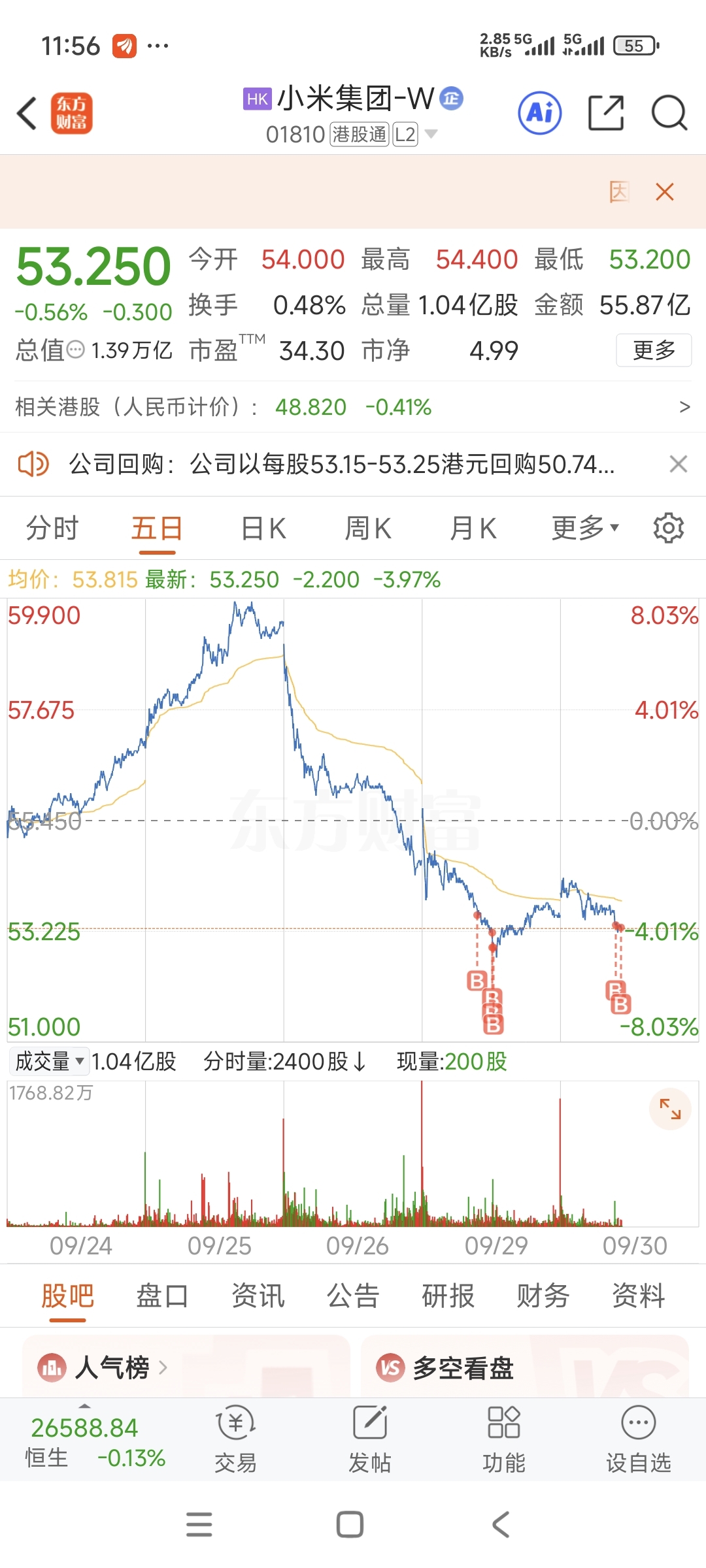 满仓12万股,昨天最多时亏50万,一股不卖,相信小米,一路陪伴。